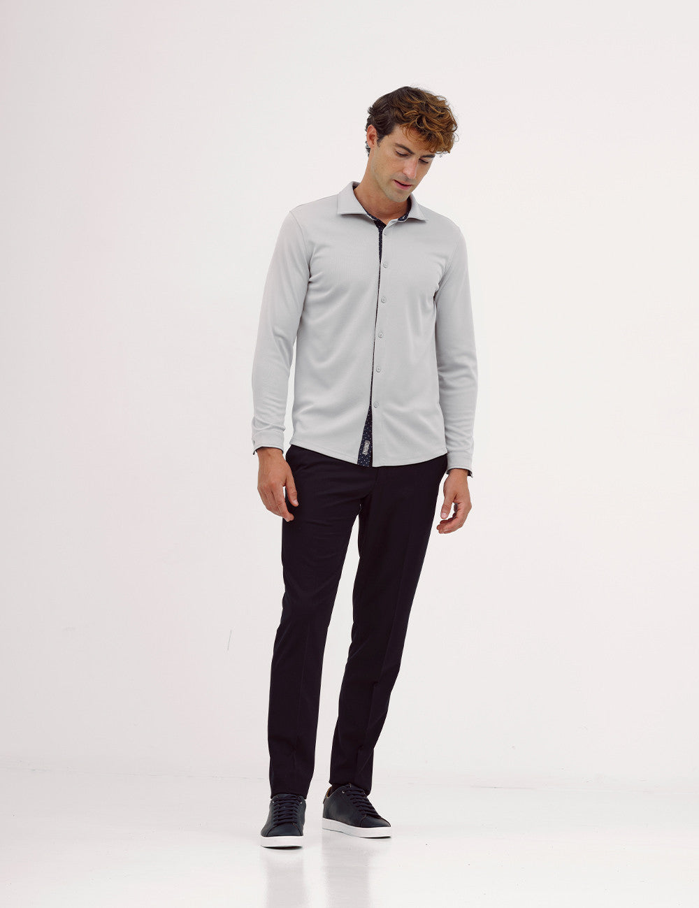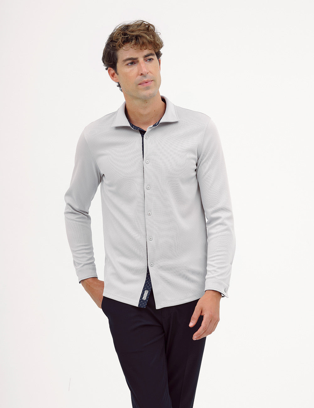 The Edge shirt with regular pattern is a versatile piece for mid-season and winter , ideal for a refined casual style. Made with Ceramic fabric , it offers thermal comfort and adaptability for everyday wear. It features a plain, pocketless design, with contrasting details on the inner placket and collar , adding a touch of subtle sophistication. Perfect for those who value functionality with style.