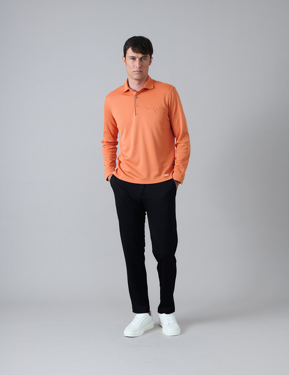 Polo Colorfuse Pocket con patrón regular y manga larga es una prenda pensada para el mediotiempo y el invierno . Confeccionada con tejido Ceramic , proporciona comodidad térmica y transpirabilidad . Incorpora un bolsillo en el pecho y detalles de contraste a tono en la tapeta y en el pie de cuello , ofreciendo un equilibrio perfecto entre funcionalidad y estilo sutil.